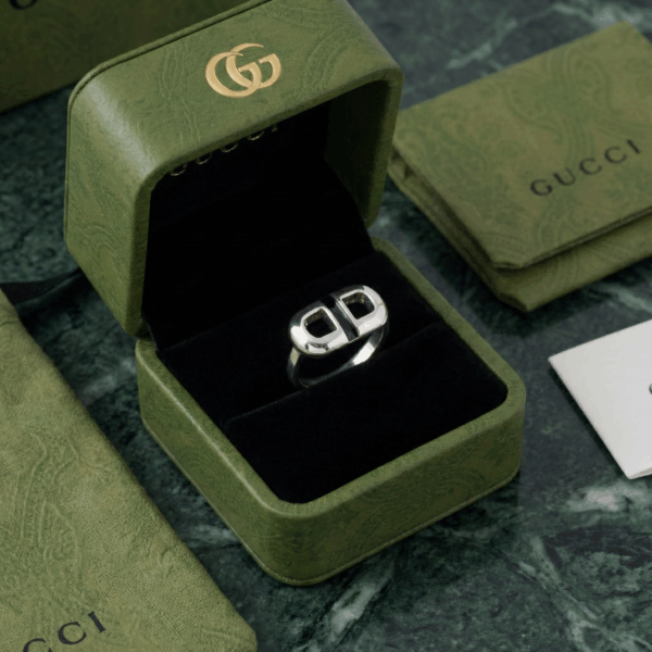 Mẫu nhẫn được lấy cảm hứng từ những mắt xích liên kết với phần mặt nhẫn chế tác tinh xảo, hình dáng chữ “GG” cách điệu tạo điểm nhấn mạnh mẽ nhưng không kém phần thanh lịch, mang đến vẻ đẹp hiện đại và tinh tế.