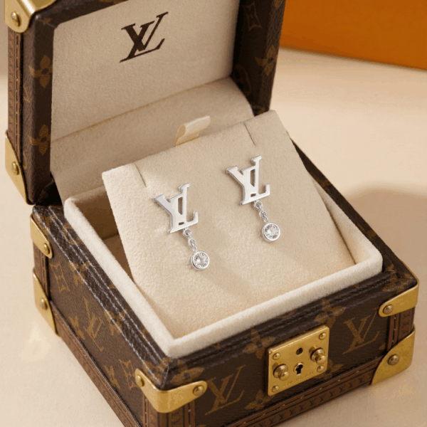 Khuyên tai dáng dài L.V đính đá Cubic Zirconia – Tinh tế & Thanh lịch. Một thiết kế thanh lịch và đầy cuốn hút từ cảm hứng thời trang hàng hiệu, mẫu khuyên tai này nổi bật với biểu tượng L.V cách điệu sắc nét, kết hợp với viên đá Cubic Zirconia lấp lánh được treo khéo léo tạo chuyển động nhẹ nhàng theo từng bước đi….