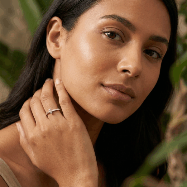 Thân nhẫn mảnh mai, được đánh bóng hoàn hảo, ôm khít ngón tay với cảm giác nhẹ nhàng và thoải mái. Đường nét sắc sảo của nhẫn hòa quyện hoàn hảo với vòng đeo mảnh mai, mang lại cảm giác nhẹ nhàng nhưng không kém phần ấn tượng, phù hợp cho cả phong cách hàng ngày lẫn các dịp đặc biệt.
