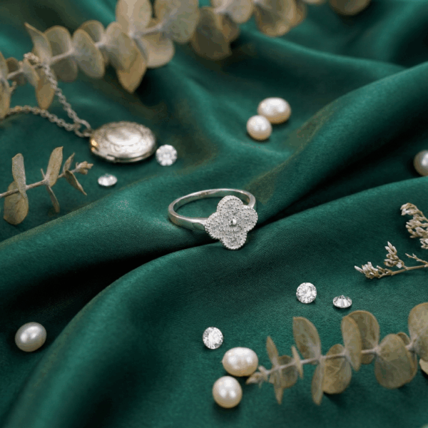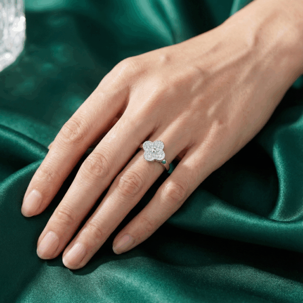 Chất liệu bạc 925 không chỉ bền bỉ, giữ được độ sáng bóng lâu dài mà còn an toàn cho mọi loại da, kể cả da nhạy cảm. Mỗi viên đá cubic zirconia được đính thủ công với độ chính xác cao, thể hiện kỹ thuật chế tác đỉnh cao và sự chú trọng đến từng chi tiết. Thiết kế hoa bốn cánh mang ý nghĩa may mắn và trường tồn, làm cho nhẫn không chỉ là một món trang sức mà còn là biểu tượng của sự tinh tế và ý nghĩa sâu sắc.